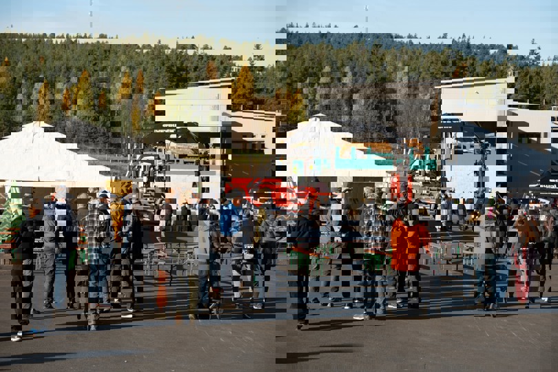 Invigningen i Kåge inleddes med att Norra Skogs vd Pär Lärkeryd samtalade med Joakim Larsson, sågverkschef på Kåge Såg, och representanter från Skellefteå Kraft och Husum Pulp om skogsråvarans betydelse i klimatomställningen. Därefter klippte Joakim Larsson bandet och förklarade den nya timmersorteringen invigd.