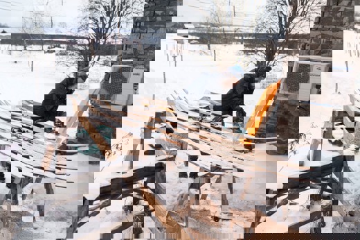 Eric och Micke bor i olika byggnader på samma gård och har verkstaden bara ett stenkast bort. De använder själva skidorna på jakt och turer tillsammans i skogarna kring gården.