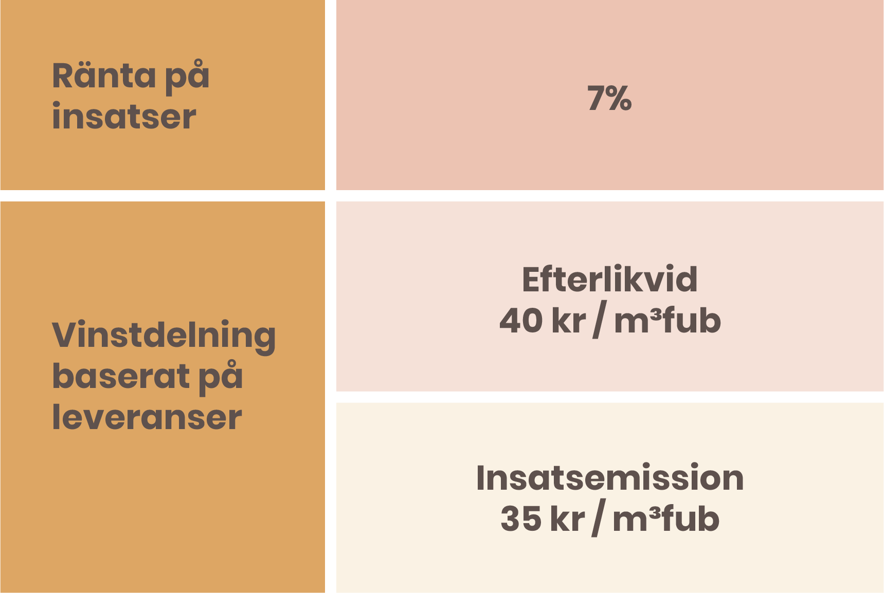 - Insatsemission: 35 kr/m³fub